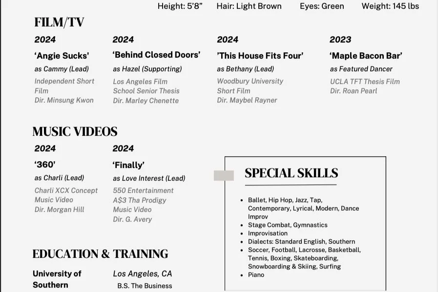 Resumes, Headshots, and Reels.